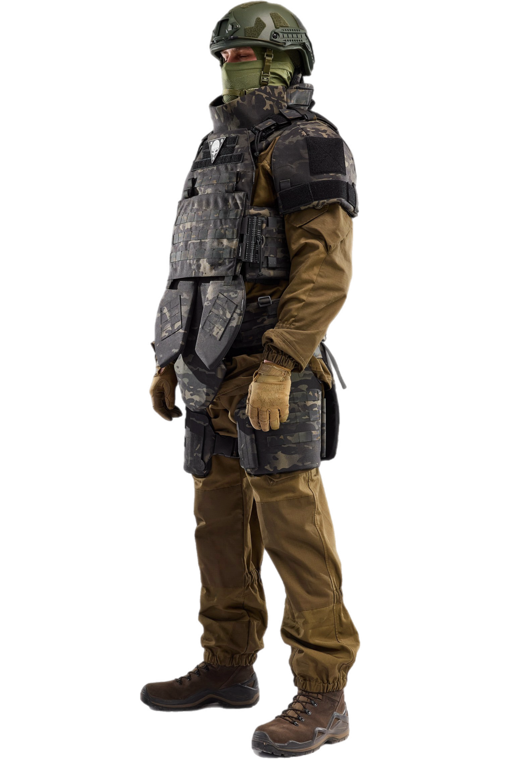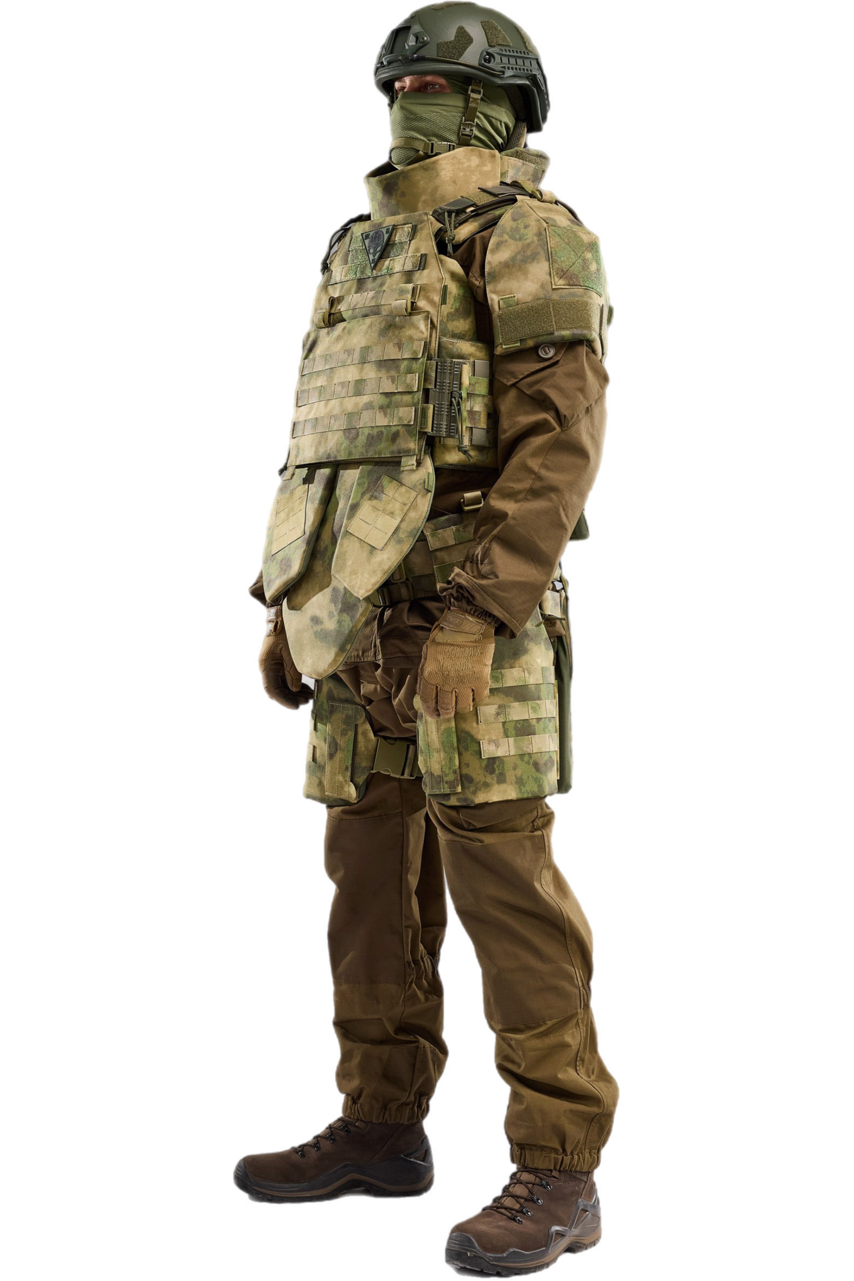 Модульный комплект бронезащиты. Разработан в связи с необходимостью модернизации имеющейся на вооружении защитной экипировки. Рассчитан на выполнение разных задач в сложных условиях. Высокий уровень защиты – 10 модулей бронезащиты, площадь противоосколочной защиты –